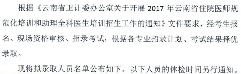 2017年玉溪市人民医院住院医师规范化培训招生考试拟录取人员名单公布了,医学教育网小编特地为大家编辑整理了,2017年玉溪市人民医院住院医师规范化培训招生考试拟录取人员名单的相关信息。希望对大家有所帮助,医学教育网会及时更新住院医师规范化培训的相关信息,还请大家多多关注。