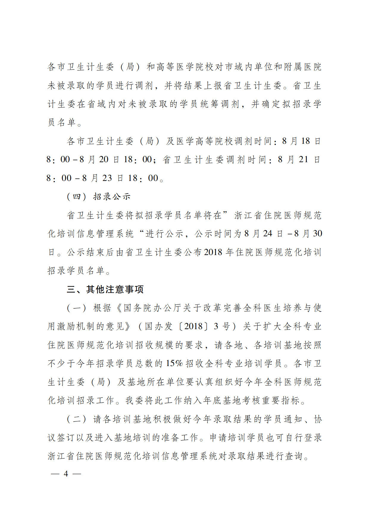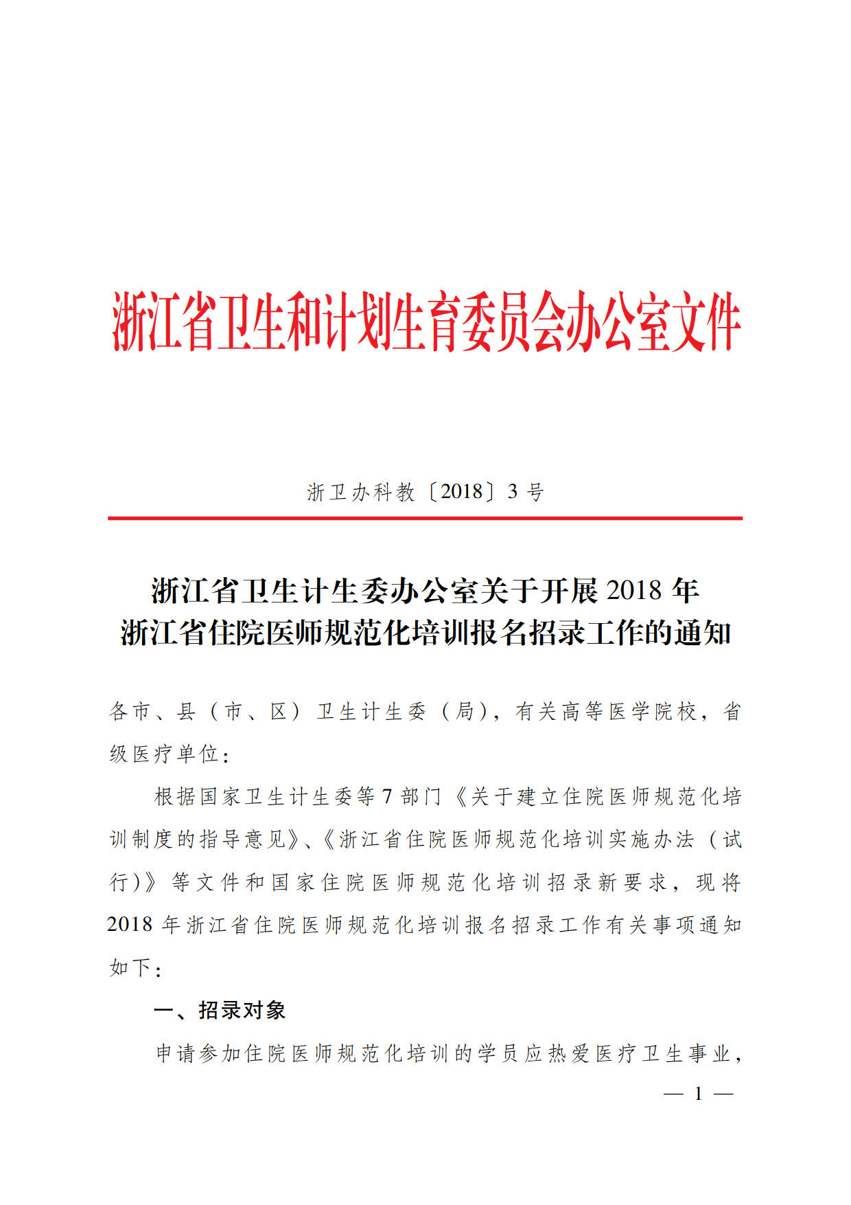 浙江省卫生计生委办公室关于开展2018年浙江省住院医师规范化培训报名招录工作的通知: