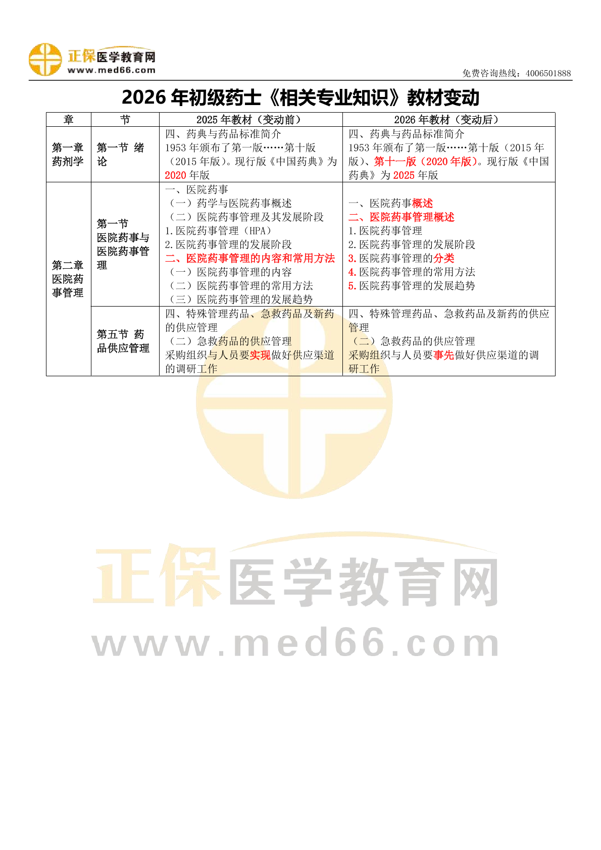 2026年初级药士《相关专业知识》教材变动汇总