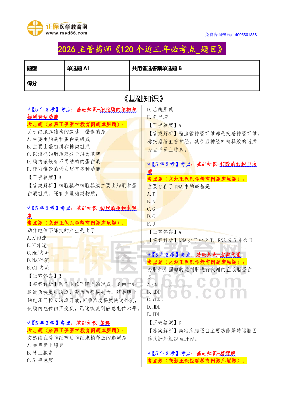 版权说明:本文档由正保医学教育网教研团队提供并上传,若内容存在侵权,请联系客服处理!
