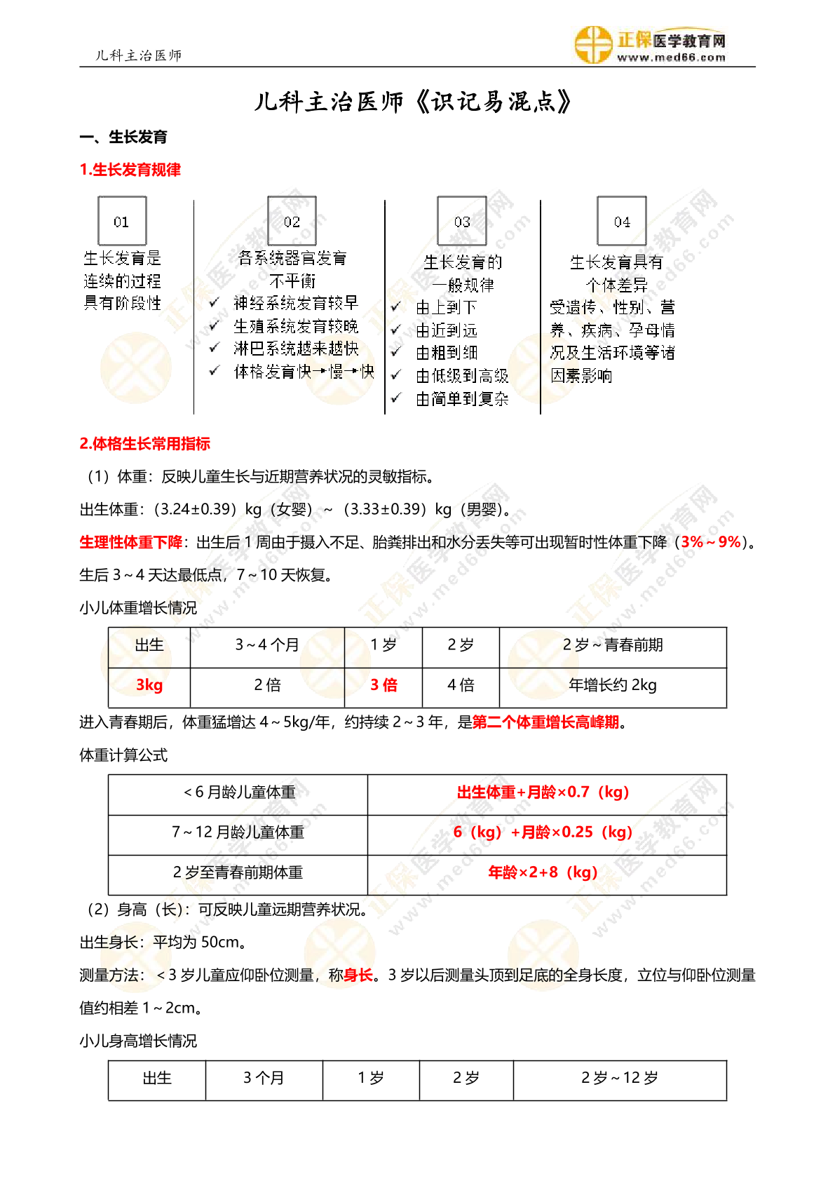 儿科主治医师《识记易混点》