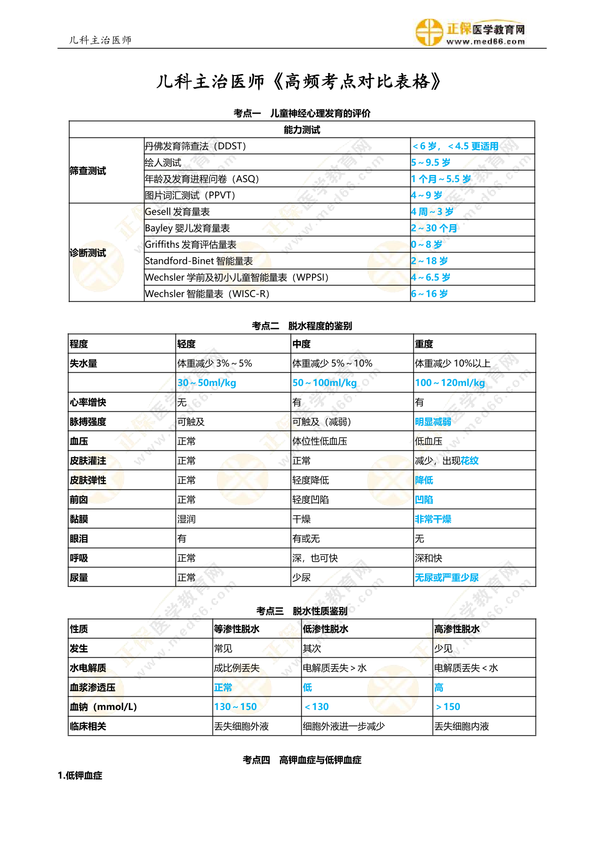 儿科主治医师《高频考点对比表格》