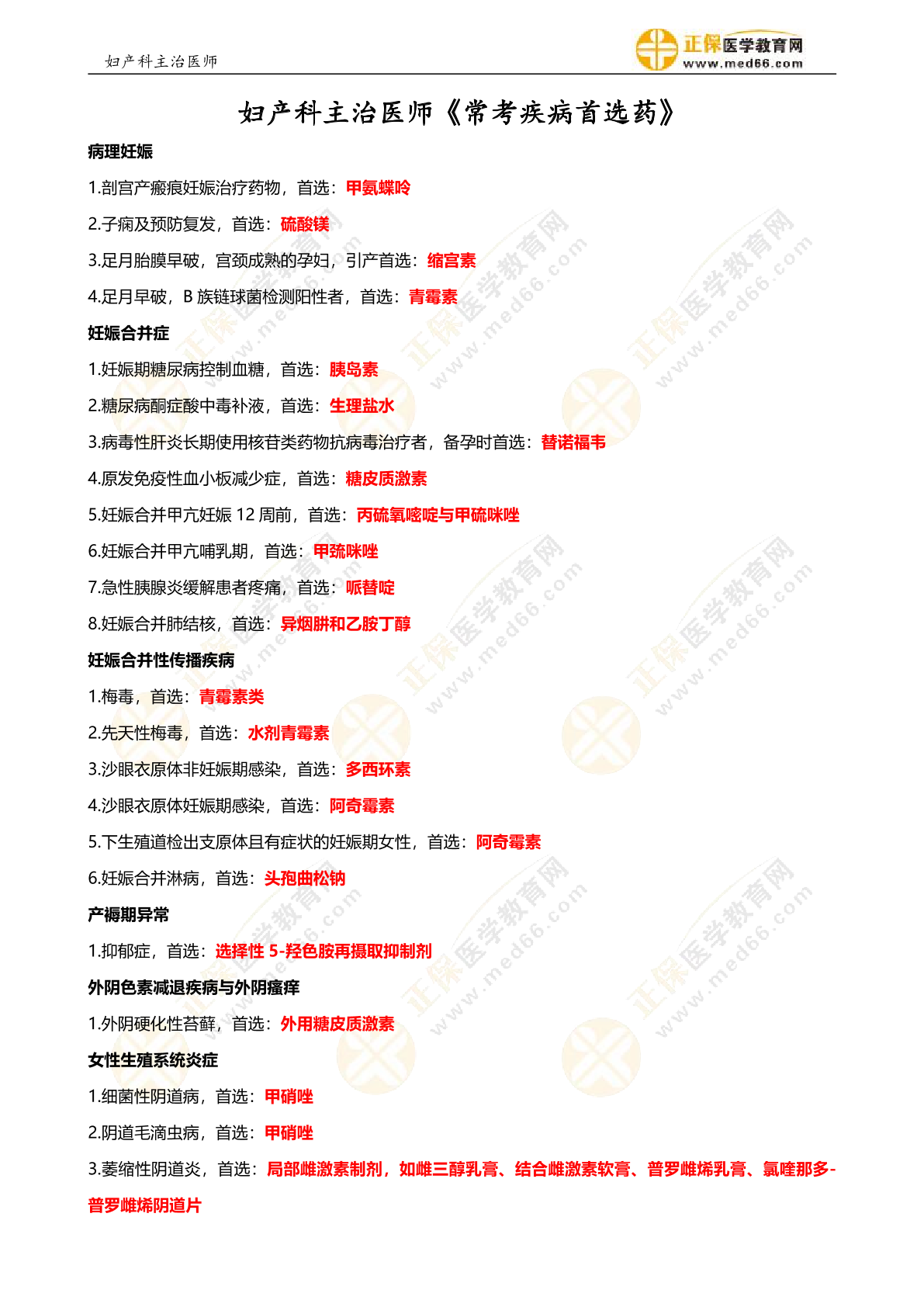 妇产科主治医师《常考疾病首选药》