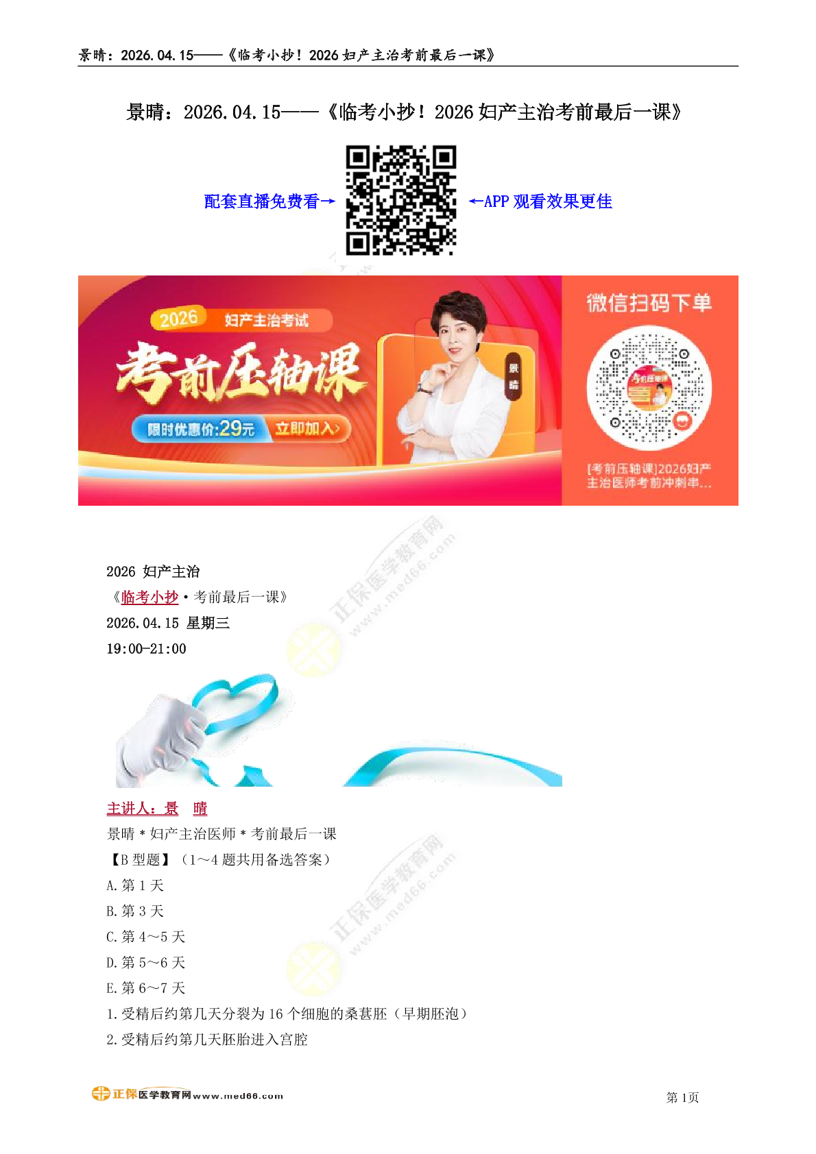 版权说明:本文档由正保医学教育网教研团队提供并上传,若内容存在侵权,请联系客服处理!