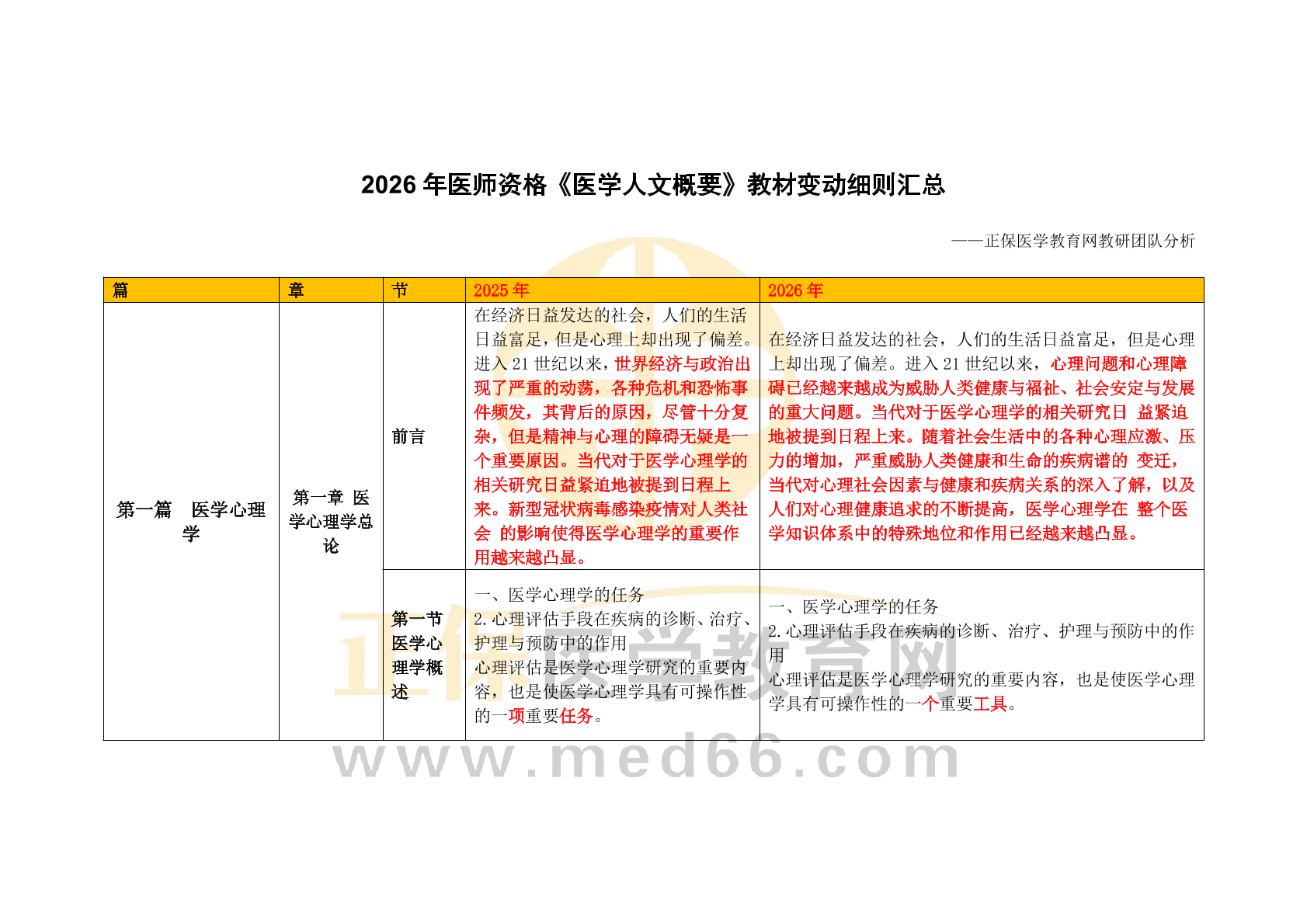 2026年医师资格《医学人文概要》教材变动细则汇总