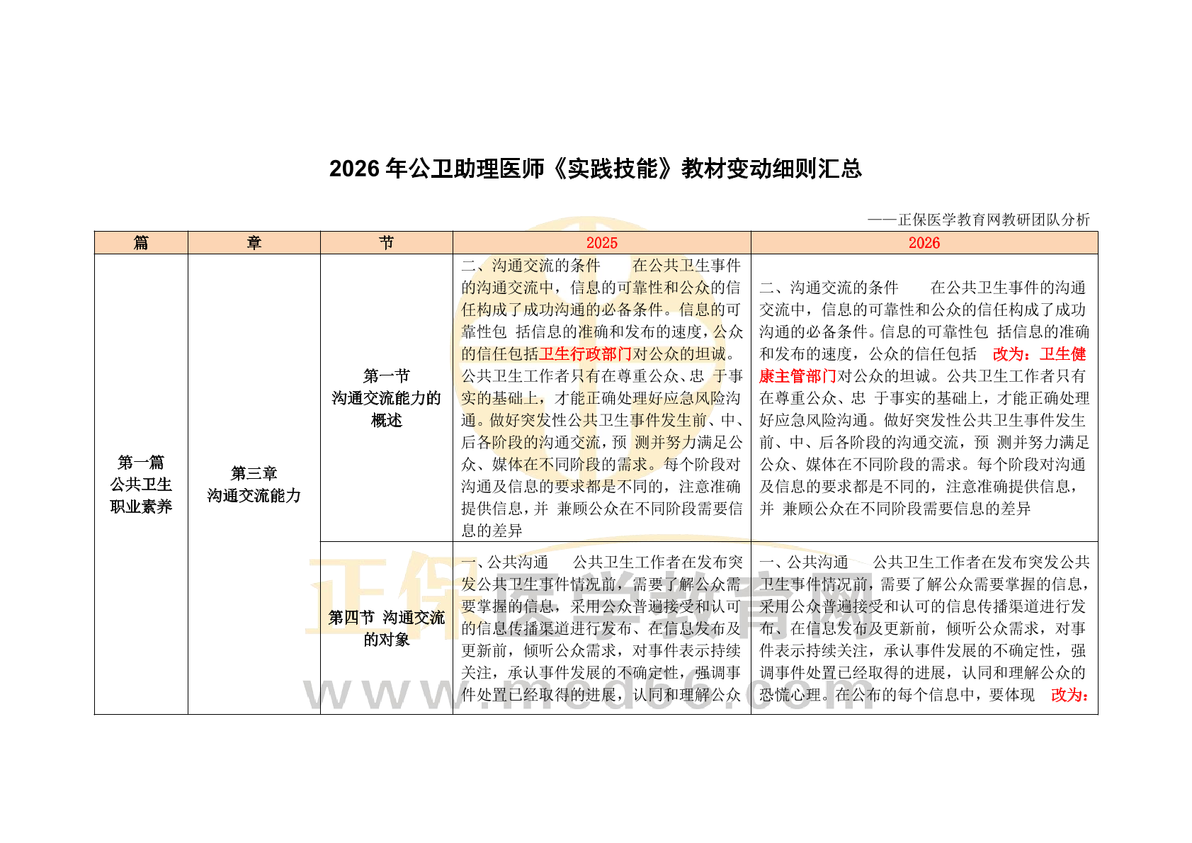 2025年公卫助理《实践技能》教材变动细则汇总