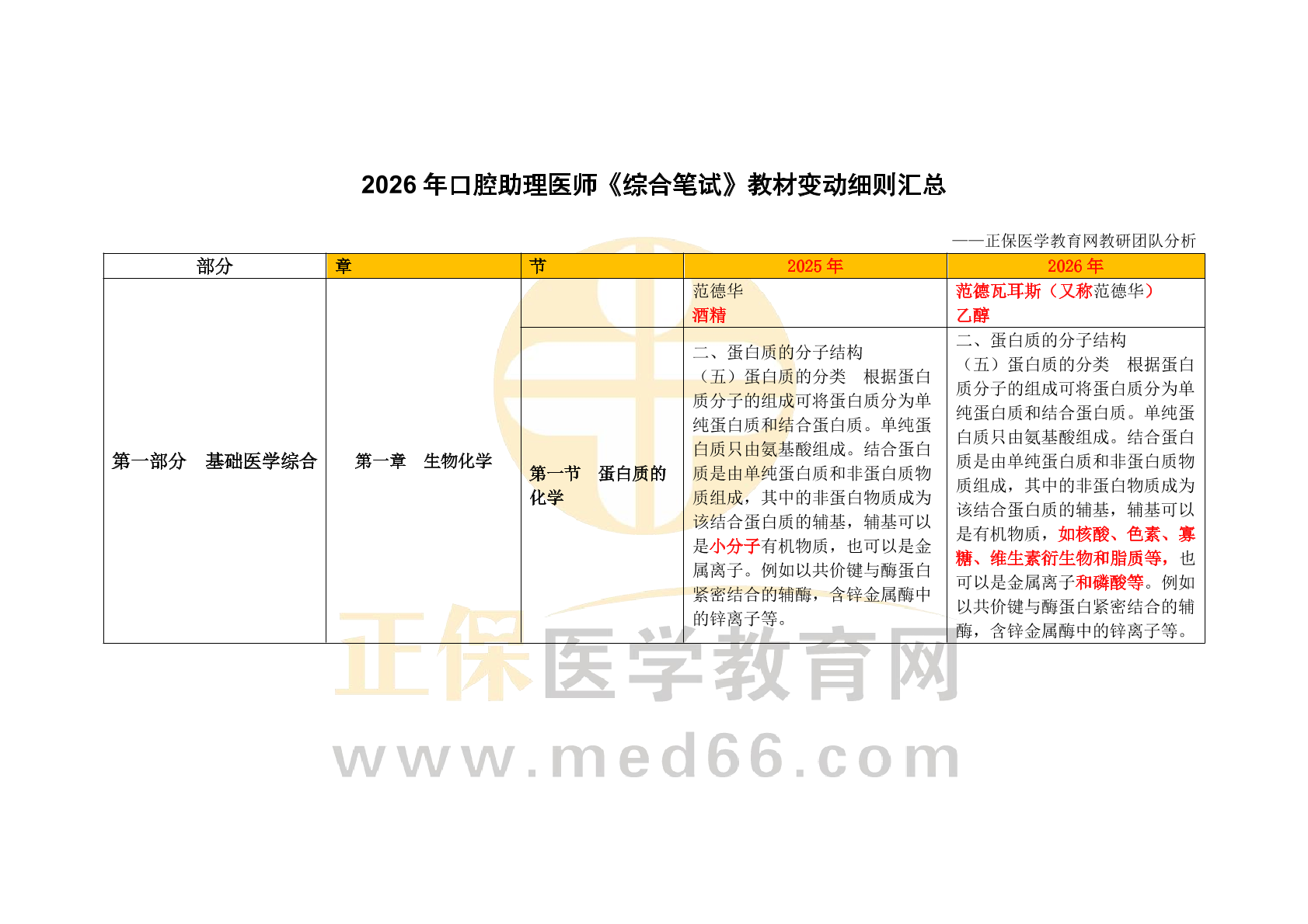 2025年口腔助理医师综合笔试教材变动细则汇总
