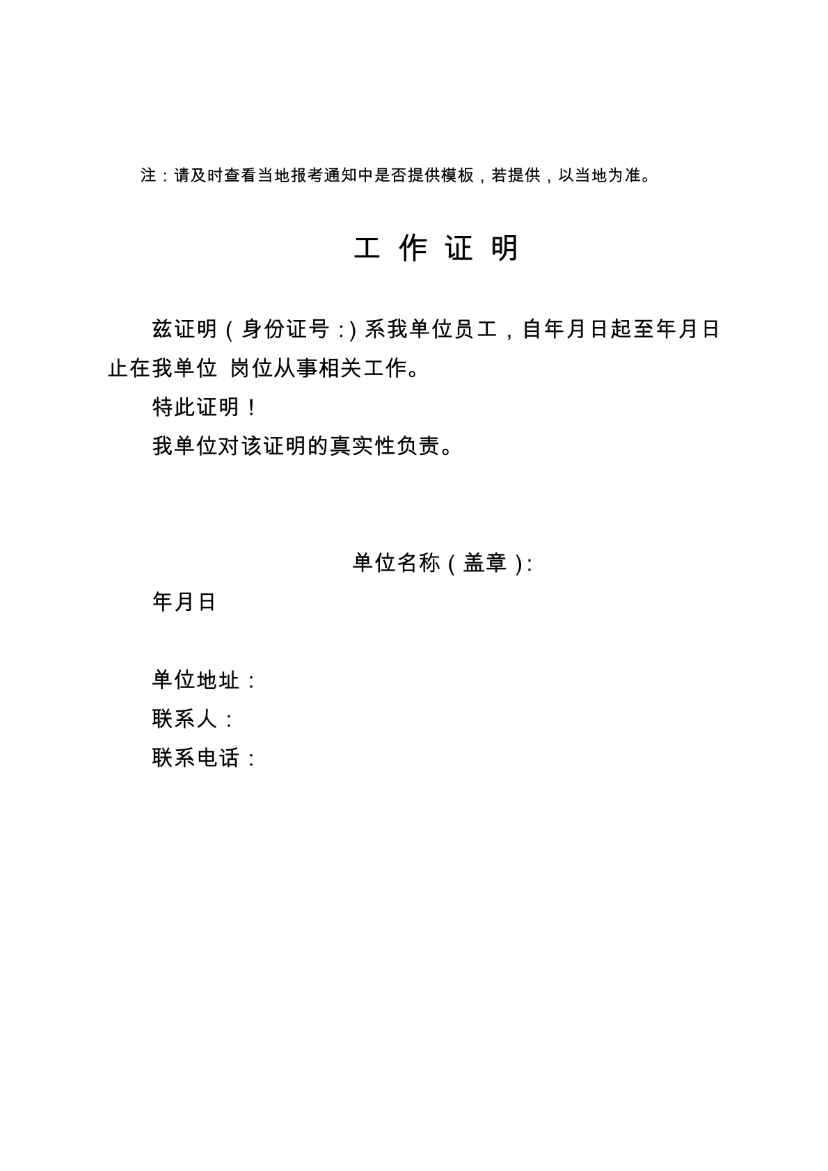 工作证明-模板4