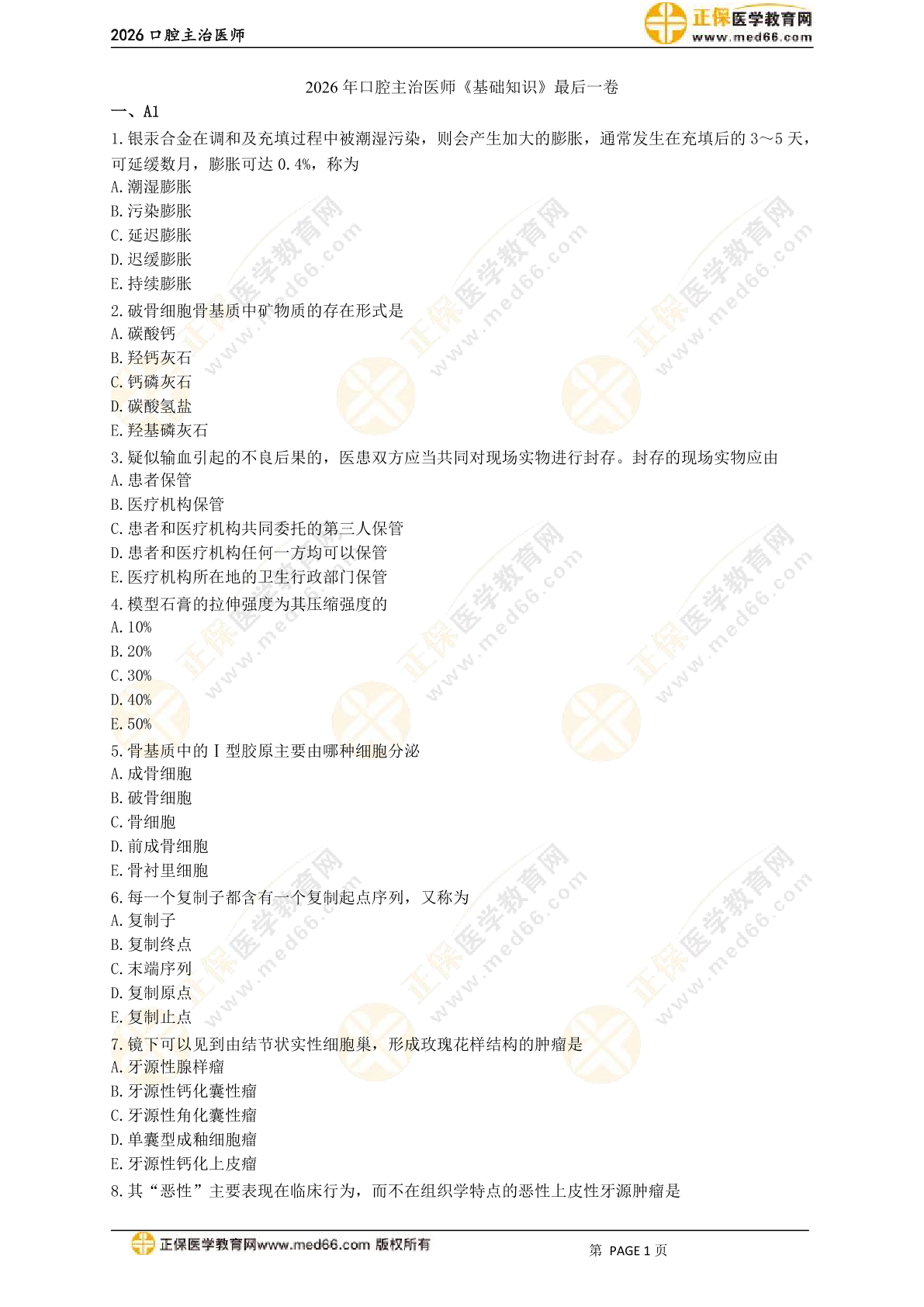 2026年口腔主治医师《最后一卷》