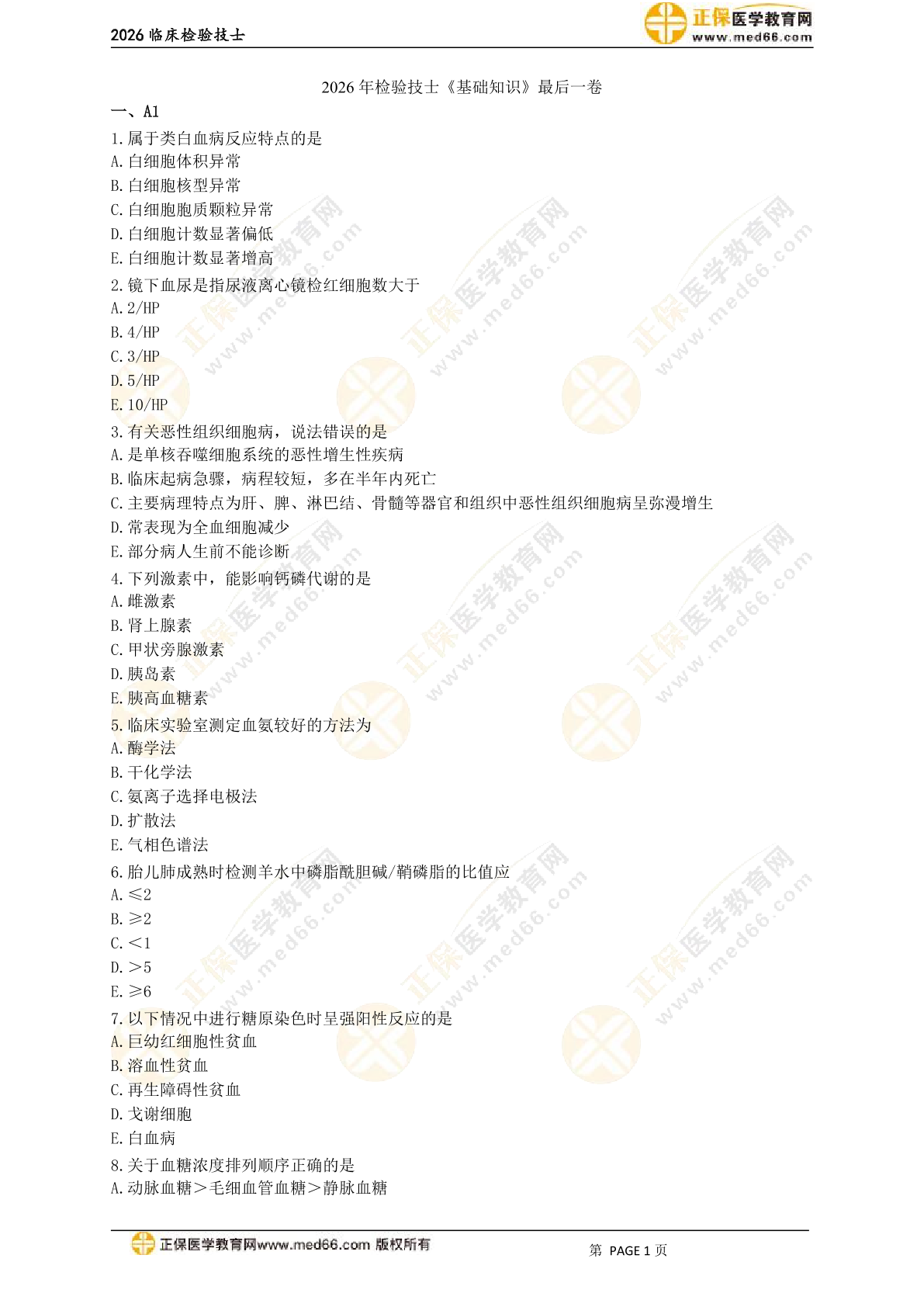 版权说明:本文档由正保医学教育网教研团队提供并上传,若内容存在侵权,请联系客服处理!