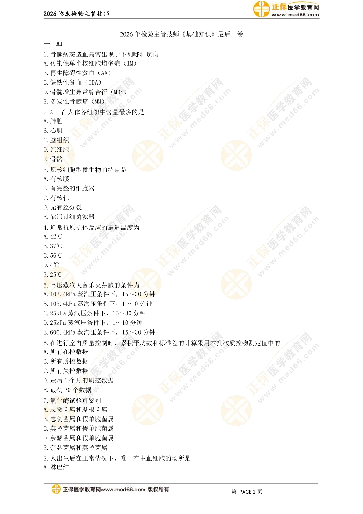 版权说明:本文档由正保医学教育网教研团队提供并上传,若内容存在侵权,请联系客服处理!