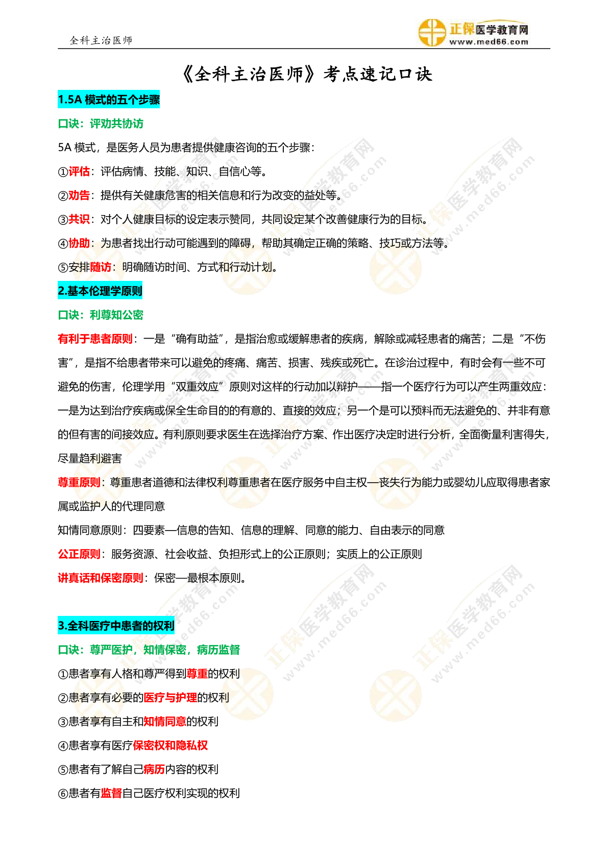 版权说明:本文档由正保医学教育网教研团队提供并上传,若内容存在侵权,请联系客服处理!