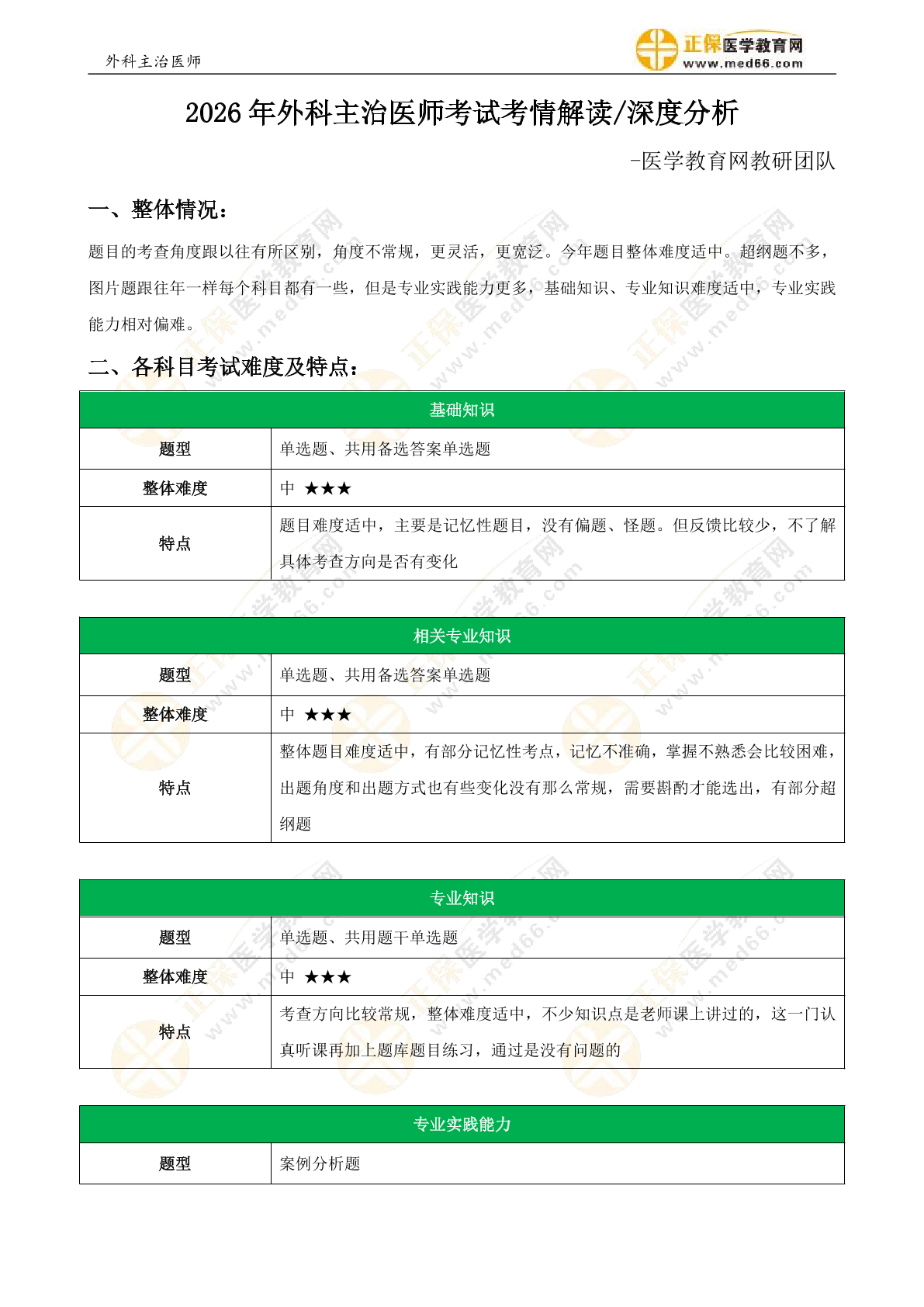 2025年外科主治医师考试考情分析解读