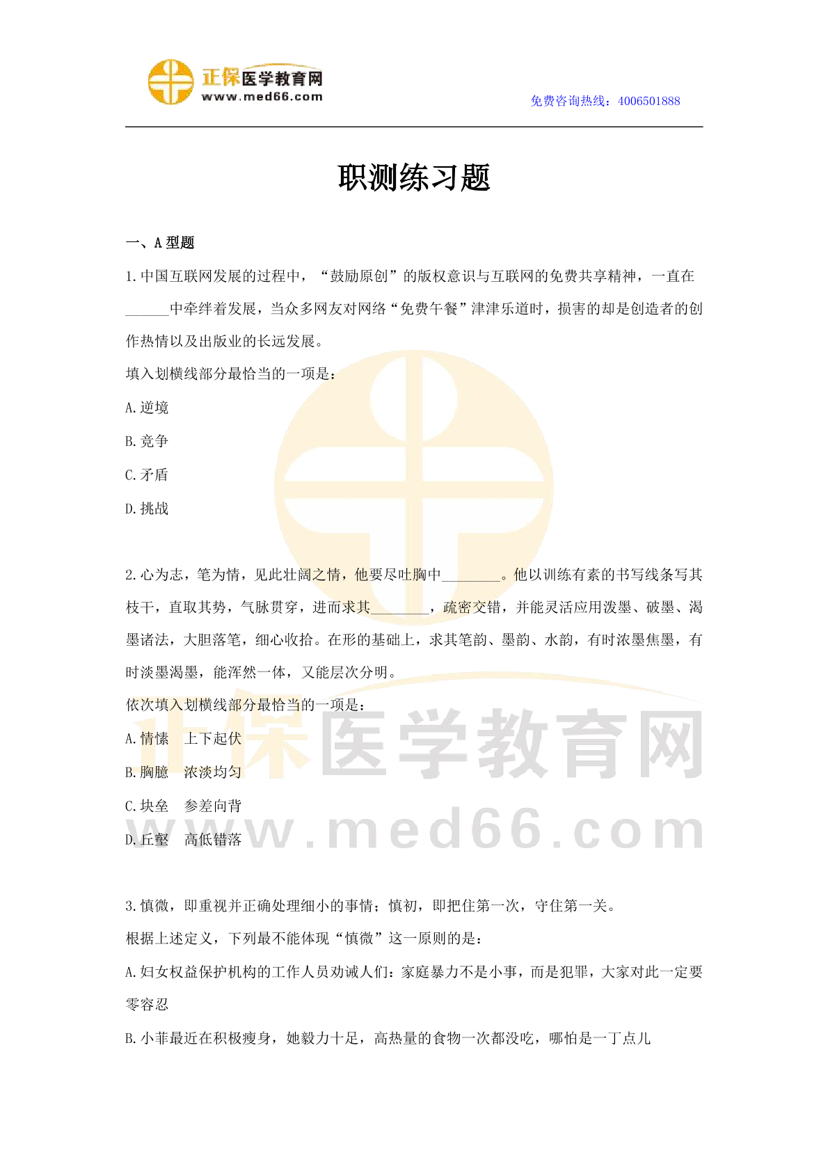 版权说明:本文档由正保医学教育网教研团队提供并上传,若内容存在侵权,请联系客服处理!