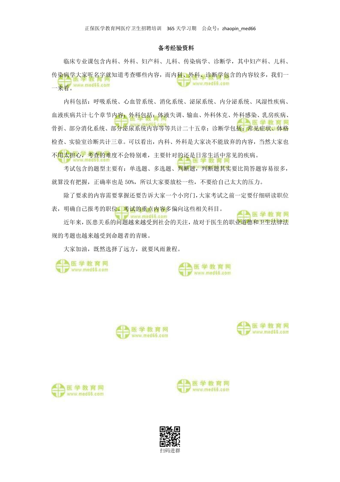 E类统考(临床)备考经验资料
