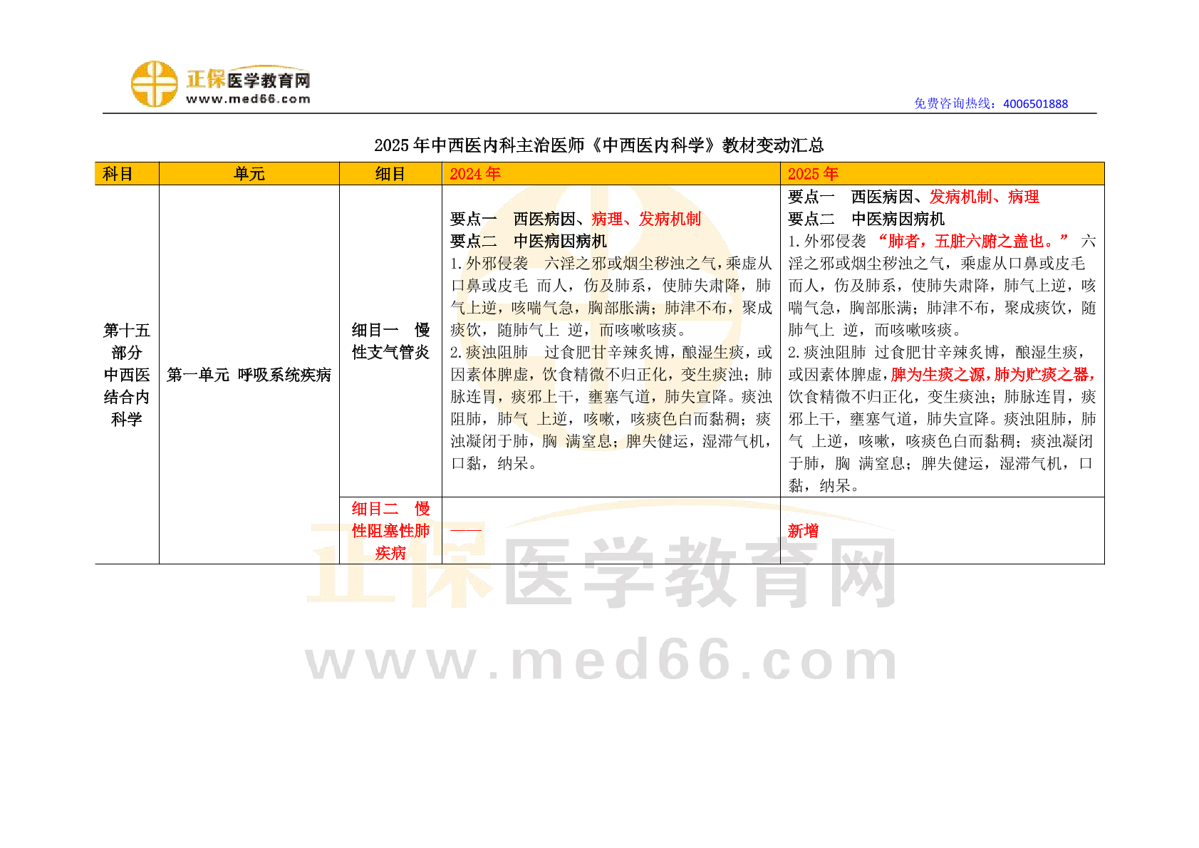 2025年中西医内科主治医师《中医基础理论》变动汇总