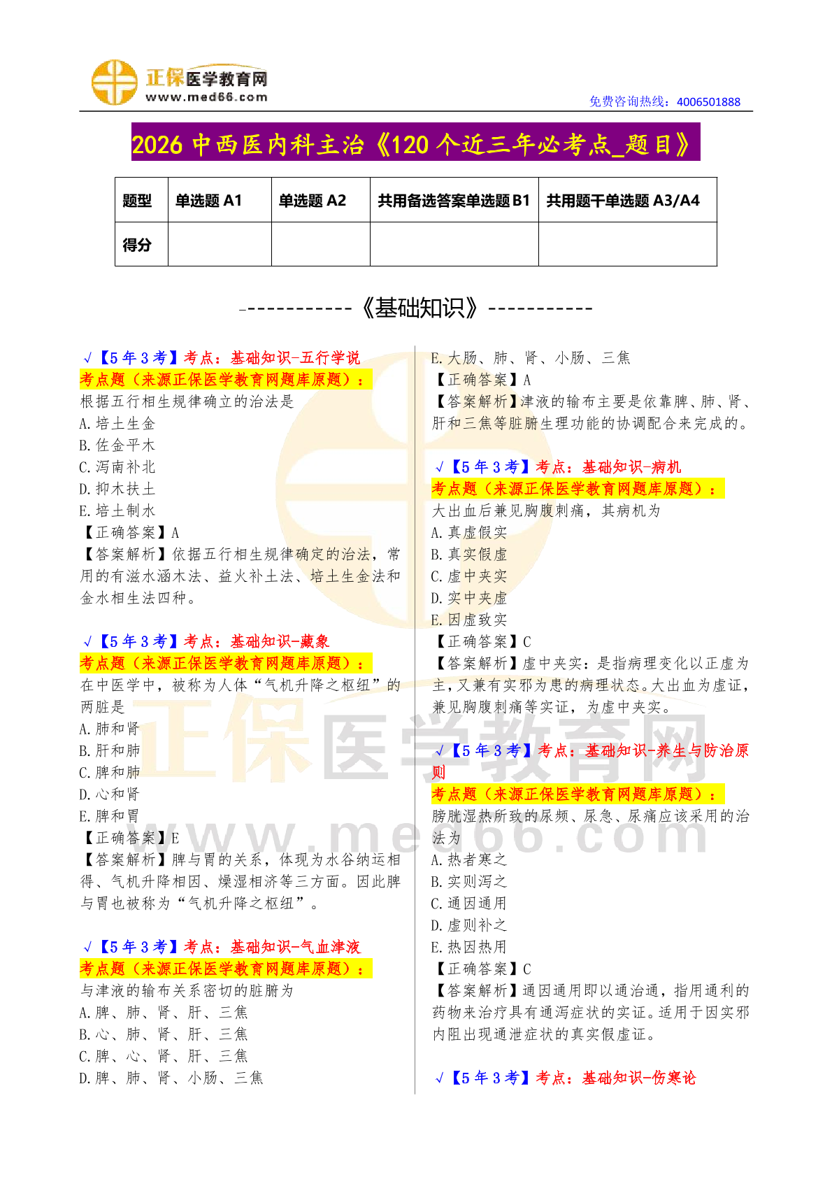 版权说明:本文档由正保医学教育网教研团队提供并上传,若内容存在侵权,请联系客服处理!