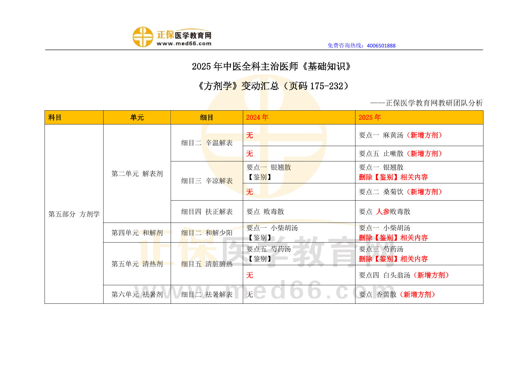 2025年中医全科主治医师《基础知识》-方剂学变动