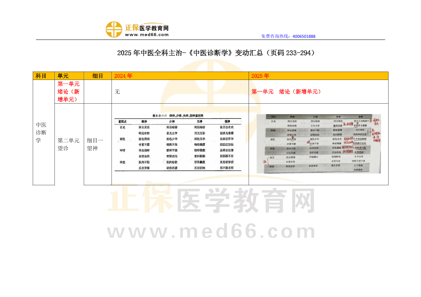2025年中医全科主治医师-《相关专业知识》-《中医诊断学》变动汇总