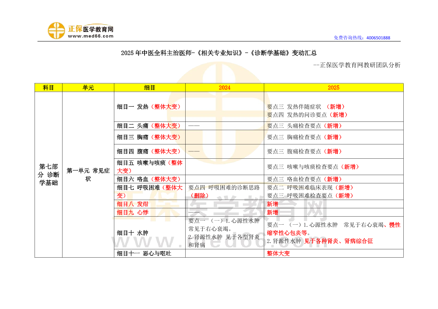 2025年中医全科主治医师-《相关专业知识》-《诊断学基础》变动汇总