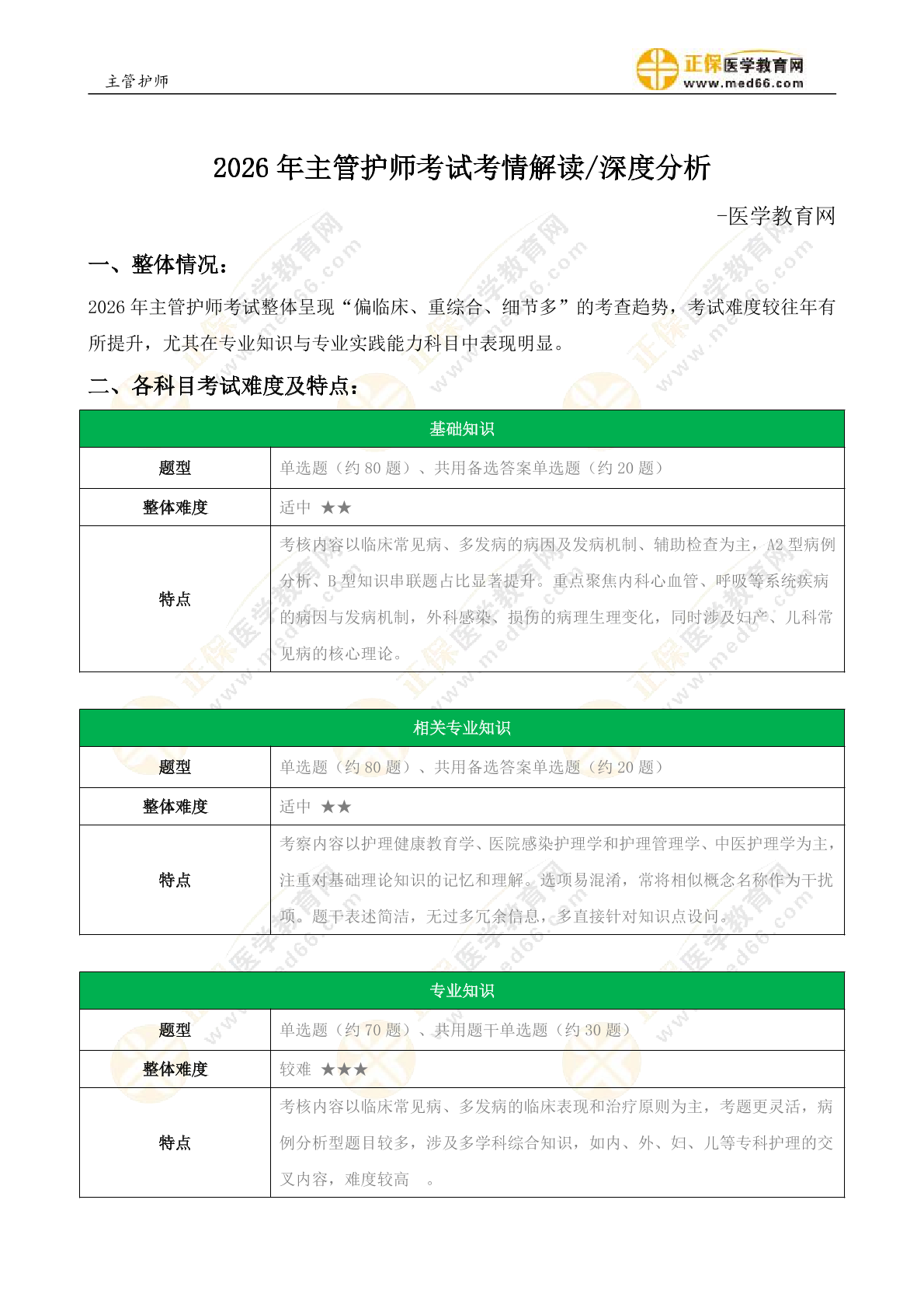 2025年主管护师考情解读深度分析
